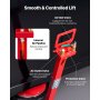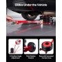 Moeiteloos manoeuvreren onder voertuigen: Uitgerust met een verstelbare handgreep en rubberen wielen glijdt de krik gemakkelijk onder uw auto en bereikt zelfs laagliggende steunpunten onder een hoek van 45° of 180°. De 90°-positie zorgt voor compacte en ruimtebesparende opslag.