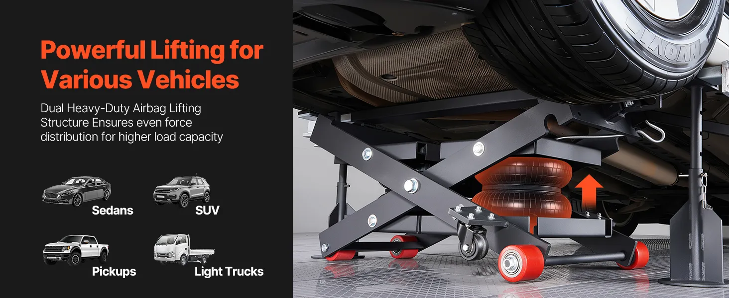 VEVOR Air draagbaar hefplatform, 3 ton hefvermogen, maximale hefhoogte 55 cm, verstelbare draagbare luchtlift met airbag, steunpoten, wielkeggen en rubberen pads, robuust voor sedans, SUV's en pick-ups.