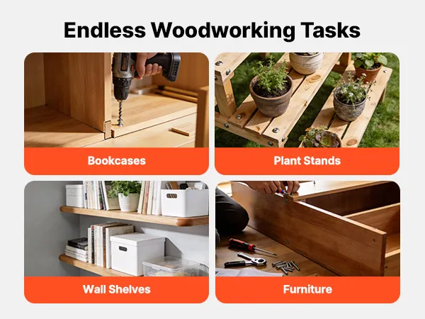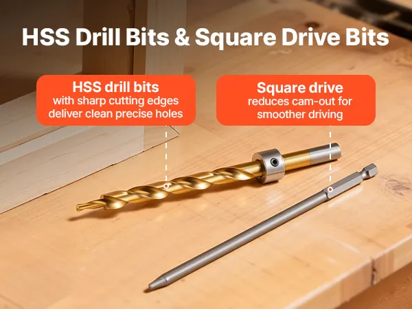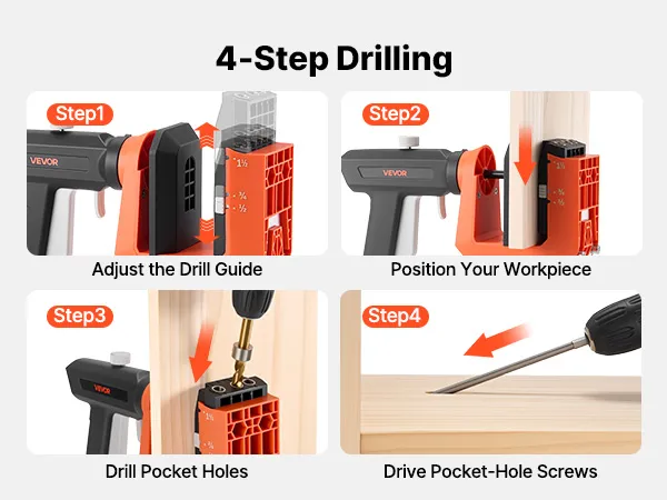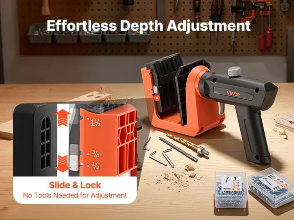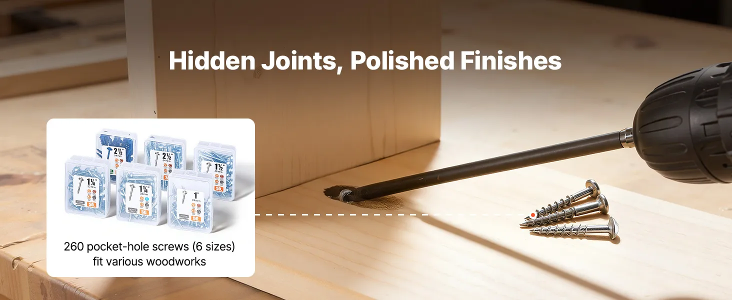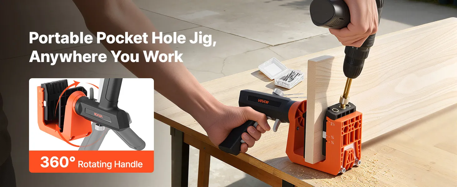 • Draagbaar en veelzijdig: De pocketgatenboorset met nylon behuizing en aluminium onderdelen combineert stabiliteit met een laag gewicht en maakt verschillende werkhoeken mogelijk voor meubels, kasten, planken en andere houtbewerkingsprojecten.