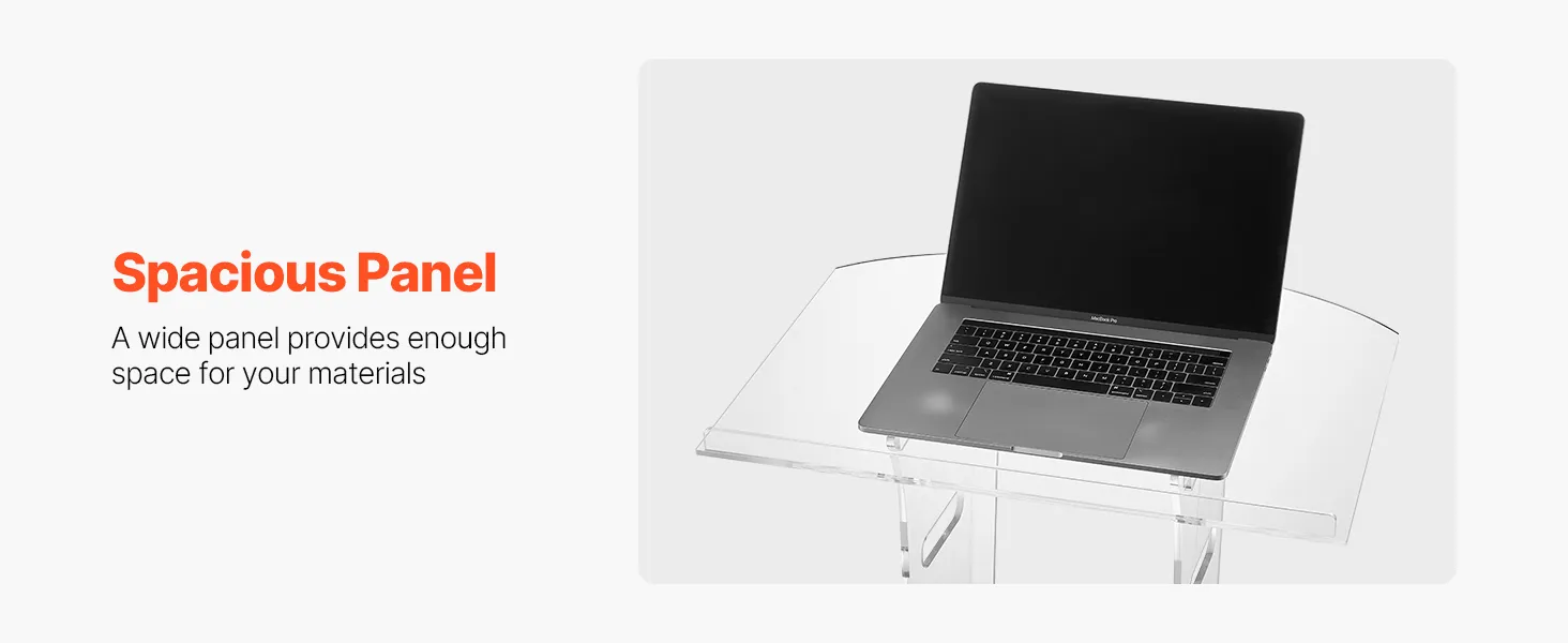 VEVOR Podiumstandaard Lectern (109 cm) van acryl, draagbaar laptopbureau met breed leesoppervlak en opbergruimte en boekenstopper, staand, voor klaslokalen, bruiloften, conferenties