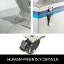 Door een transparant kijkvenster kan de gebruiker de interne werking van de machine observeren. Gebruik de pedaalschakelaar om de inflatie te regelen. Premium universele wielen zijn vergrendelbaar om de positie te fixeren.
