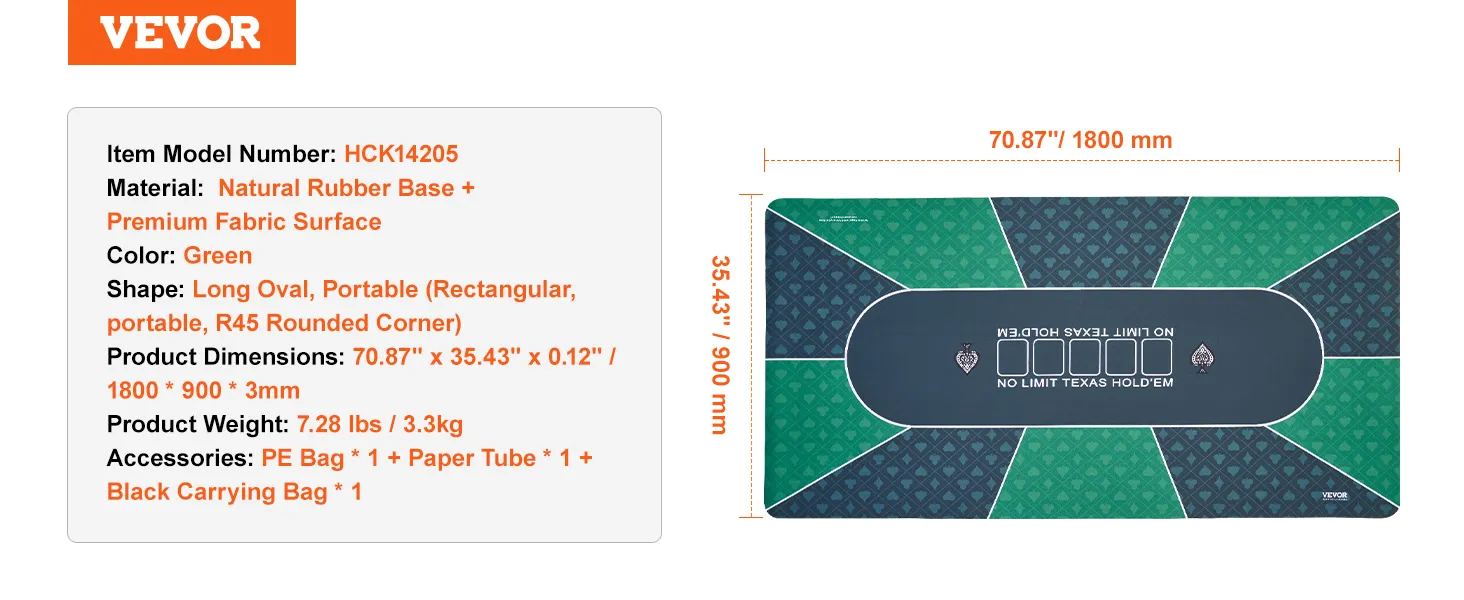 Geniet van je speeltijd met het VEVOR pokertafelblad