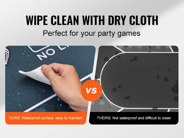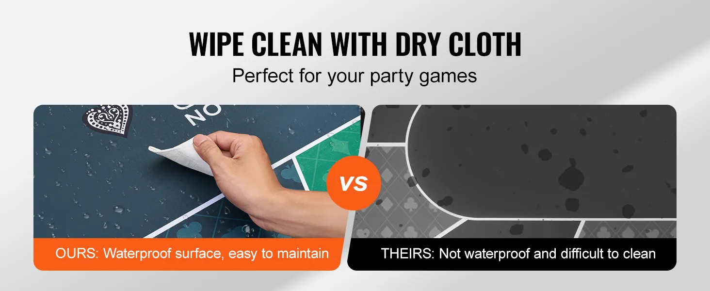 Zacht en gemakkelijk schoon te maken: de pokertafelmat heeft een glad en comfortabel oppervlak en biedt de ideale wrijving zodat de kaarten perfect glijden zonder weg te glijden. Het patroon is duidelijk en vervaagt niet gemakkelijk. Het beschermt de tafel ook tegen krassen en vlekken. Mochten er vloeistoffen op de mat spatten, dan maak je deze eenvoudig schoon, zonder dat dit gevolgen heeft voor je werk of entertainment.