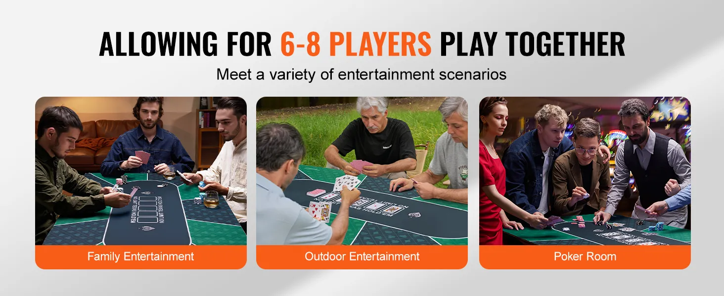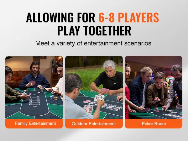 Het ondersteunt multiplayer-spellen, waardoor het veelzijdig en praktisch is. Plaats de pokermat eenvoudig op elke tafel en verander hem in een professionele pokertafel - thuis, buiten of op een uitgaanslocatie.