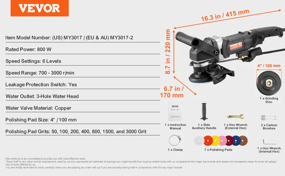 De VEVOR natte steenpolijstmachine is voorzien van een krachtige 800W-motor, 6 variabele snelheidsinstellingen en 7 polijstpads. Daarmee is het de oplossing om vlekkeloze oppervlakken te verkrijgen en tegelijkertijd een veilige en schone werkomgeving te behouden!