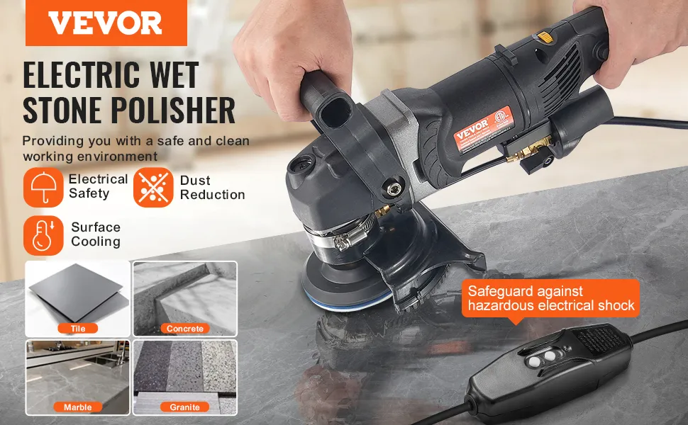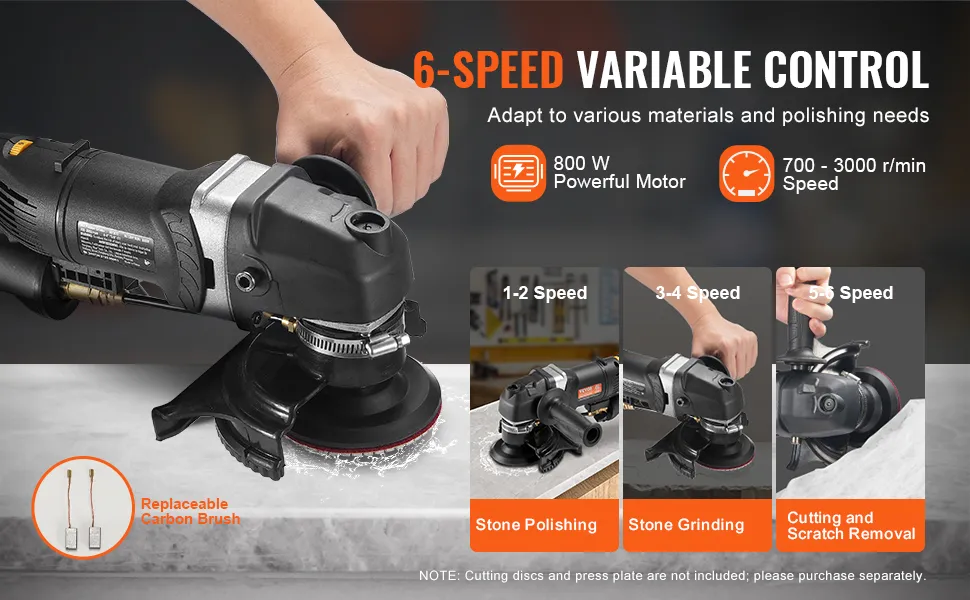 6 snelheden voor nauwkeurig polijsten: de natte steenpolijstmachine van VEVOR biedt 6 variabele snelheden van 700 tot 3000 tpm, waardoor hij veelzijdig is voor diverse oppervlakken. Pas de snelheid eenvoudig aan op materialen zoals marmer, graniet, beton en tegels voor een vlekkeloze afwerking.