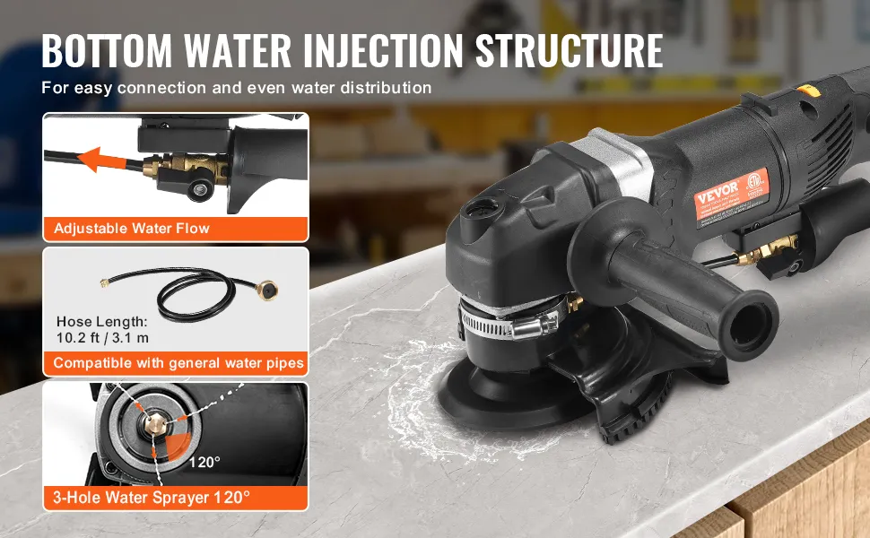 Uitgerust met een roestvrije, volledig koperen schakelaar en een watersproeier met drie gaten, biedt deze natpolijstmachine een regelbare en constante waterstroom. Dit zorgt niet alleen voor een stofvrije werkomgeving, maar vermindert ook morsen.
