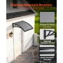 VEVOR Voordeurluifel, 61x60 cm, Aanbouwluifel, Dak met Afwatering & ABS-beugel, Bescherming tegen Regen, Sneeuw & Zon, Polycarbonaat Deurdak voor Veranda & Terras, Rookgrijs