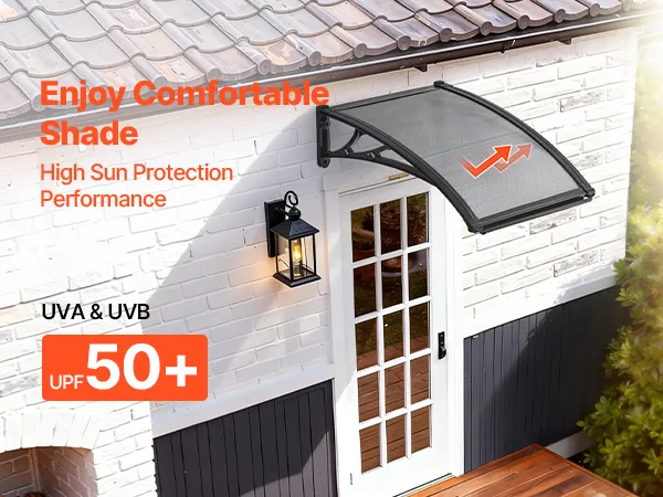 Bescherming het hele jaar door: De aanbouwluifel beschermt tegen fel zonlicht, regen en sneeuw, en is bestand tegen harde wind. Dankzij de UPF 50+ zonbescherming houdt hij de warmte in de zomer tegen en biedt hij betrouwbare bescherming in de winter. Geschikt voor voordeuren en terrassen.