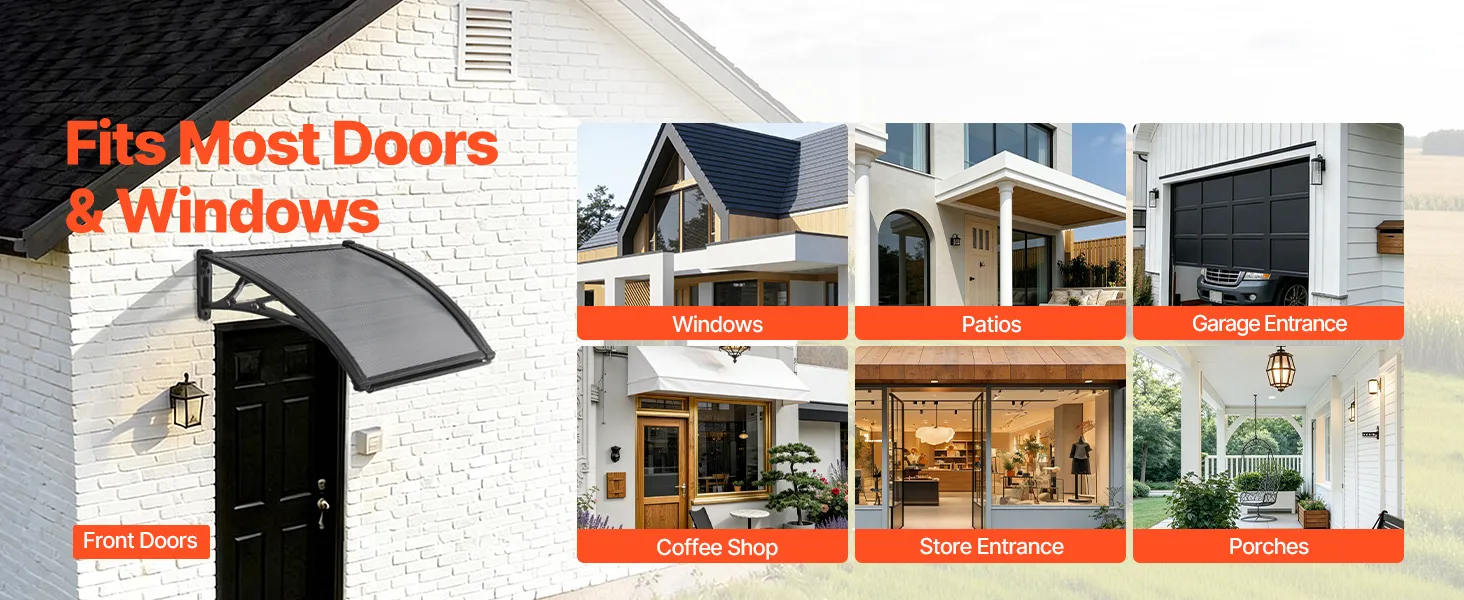 Veelzijdige toepassingen: Deze deurafdak is ideaal voor voordeuren, ramen, balkons en veranda's, en is eveneens geschikt voor woningen, cafés en winkels. Veilig verpakt voor een onbeschadigde levering en met een snelle klantenservice.