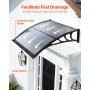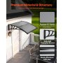 VEVOR Voordeurluifel, 965x1017 mm, Aanbouwluifel, Dak met Afwatering & ABS-beugel, Bescherming tegen Regen, Sneeuw & Zon, Polycarbonaat Deurdak voor Veranda & Terras, Rookgrijs