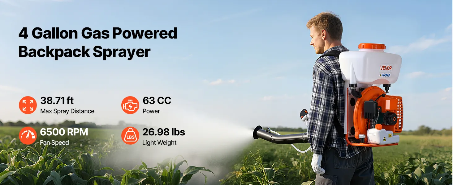 Large 4-Gallon Tank: The 4-gallon capacity minimizes refills, ensuring longer work sessions. Our gas powered fogger sprayer is suitable for treating yards, gardens, farms, orchards, and community areas