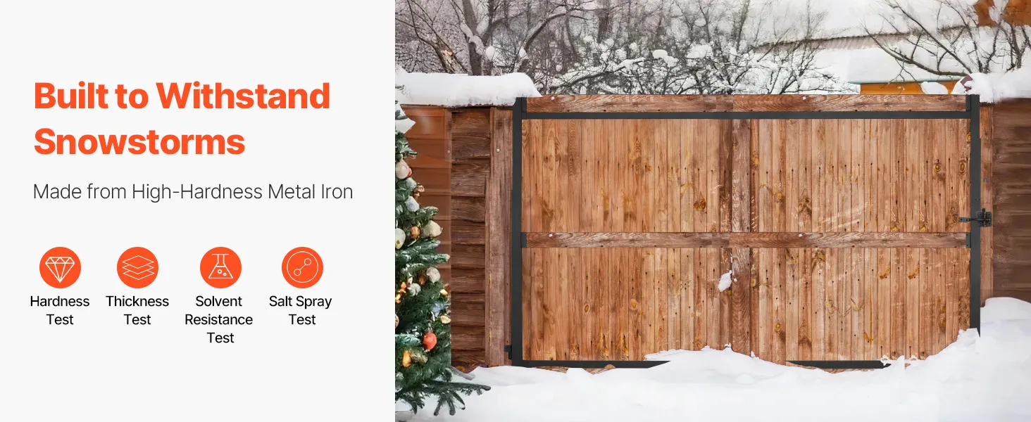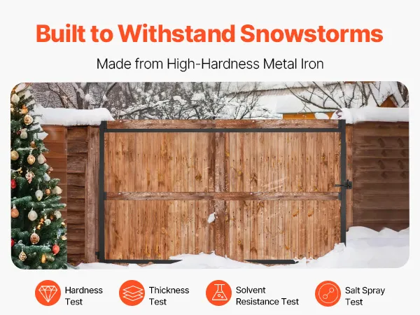 Made from high-hardness metal iron, this adjustable gate kit is immune to rust and corrosion, and won't crack easily. It has passed hardness, thickness, solvent resistance, and salt spray tests, and can withstand extreme weather conditions, maintaining its durability over time.