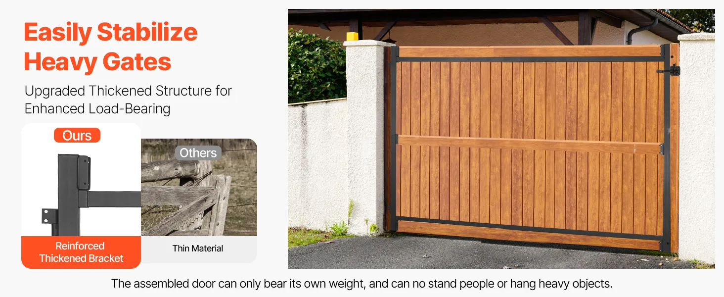 This metal gate building kit avoids sagging and aging, fitting 99% of door types on the market. It is rust and corrosion-resistant, able to withstand heavy rain, snow, and other harsh weather conditions, making it suitable for long-term outdoor use. Ideal for doors of all types and sizes.