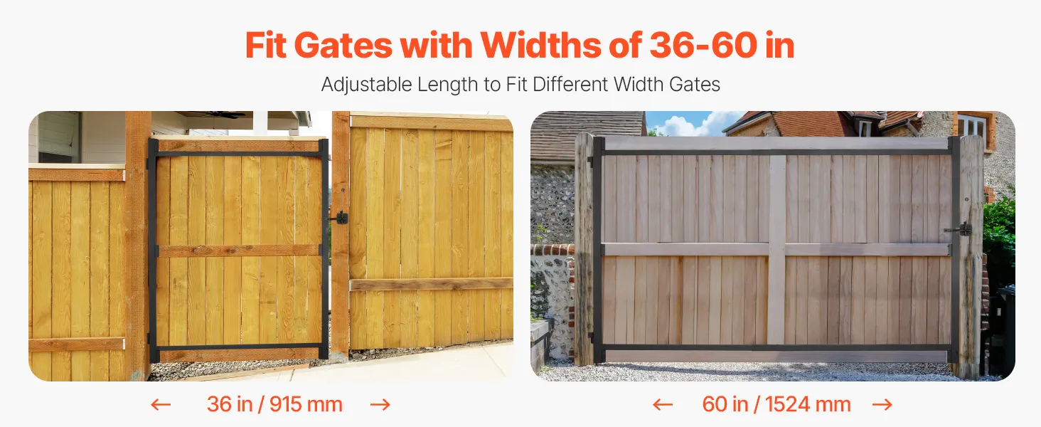 Fit Various Door Sizes: The full gate frame kit is adjustable, fitting door widths from 36 to 60 in. No cutting is required, making it ideal for installing large doors, and fences in a variety of sizes