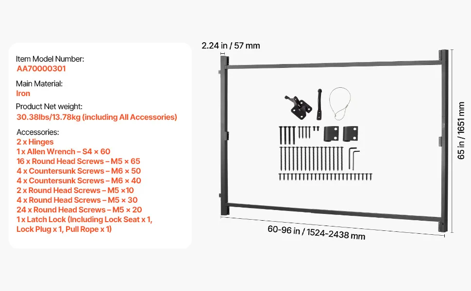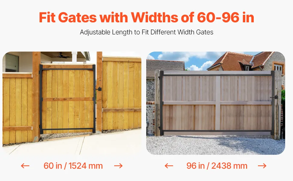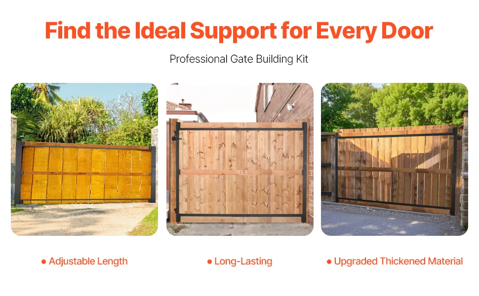 Geschikt voor verschillende deurmaten: De complete set poortframes is verstelbaar en past op deurbreedtes van 152 tot 243 cm (60 tot 96 inch). Er hoeft niet te worden gesneden, waardoor het ideaal is voor het installeren van grote deuren, hekken of dubbele deuren van verschillende afmetingen