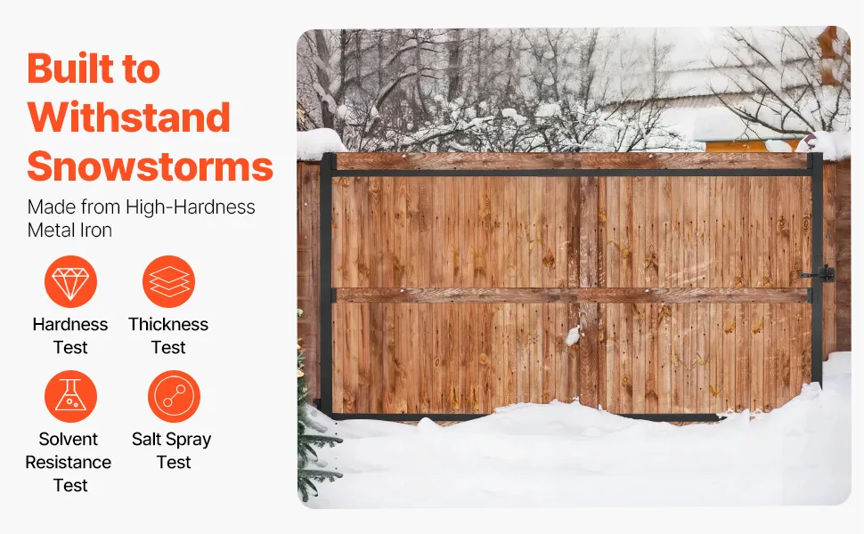 Deze verstelbare poortset is roest- en corrosiebestendig en scheurt niet snel. Het heeft hardheids-, dikte-, oplosmiddelbestendigheids- en zoutneveltesten doorstaan en is bestand tegen extreme weersomstandigheden, waardoor de duurzaamheid in de loop van de tijd behouden blijft.