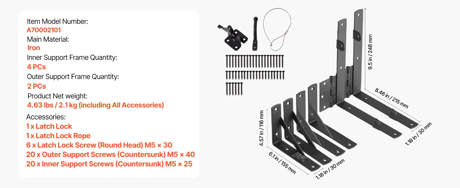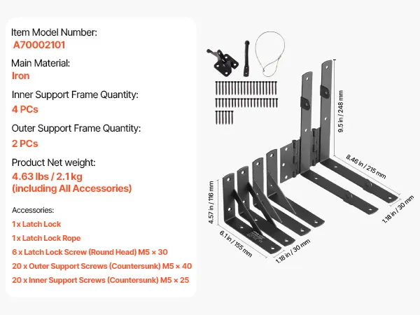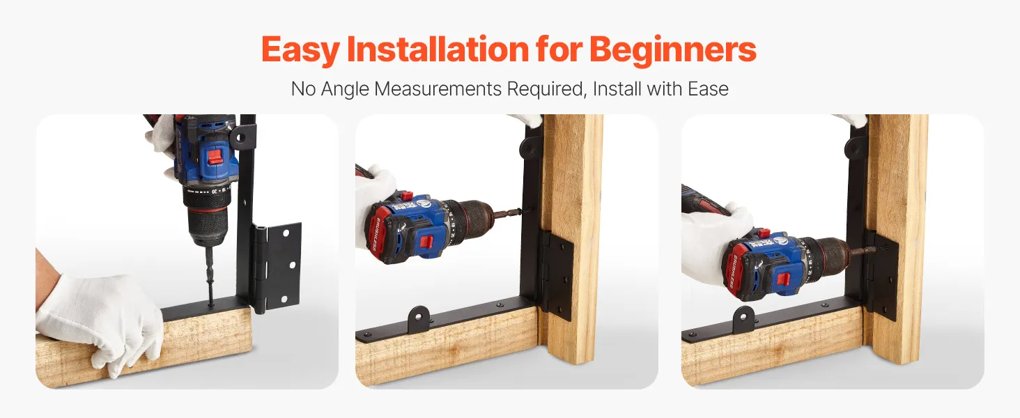 The gate frame kit includes the latch and screws, with detailed installation instructions. No angle measurements are required, making it simple for even beginners to quickly install.