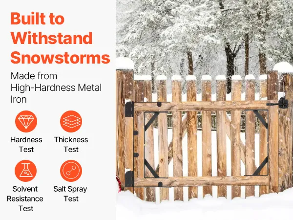 Made from high-hardness metal iron, this anti sag gate frame hardware kit is immune to rust and corrosion, ensuring durability. It has passed through hardness, thickness, solvent, and salt spray tests, standing up to extreme weather conditions and maintaining its strength over time.