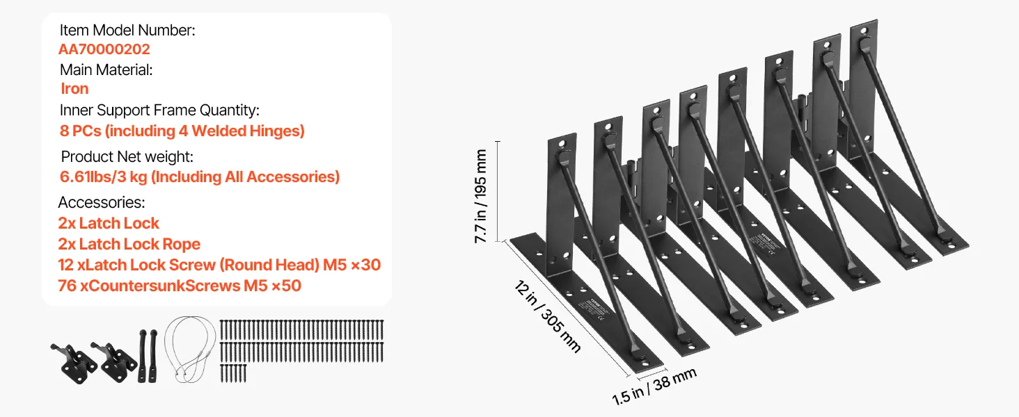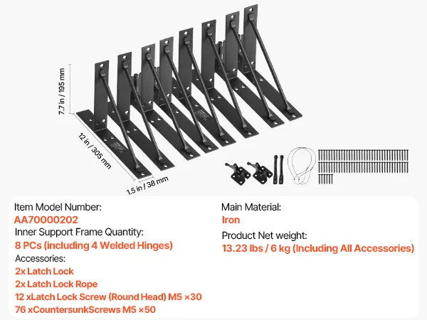 The gate frame kit includes the latch and screws, with detailed installation instructions. No angle measurements are required, making it simple for even beginners to quickly install.