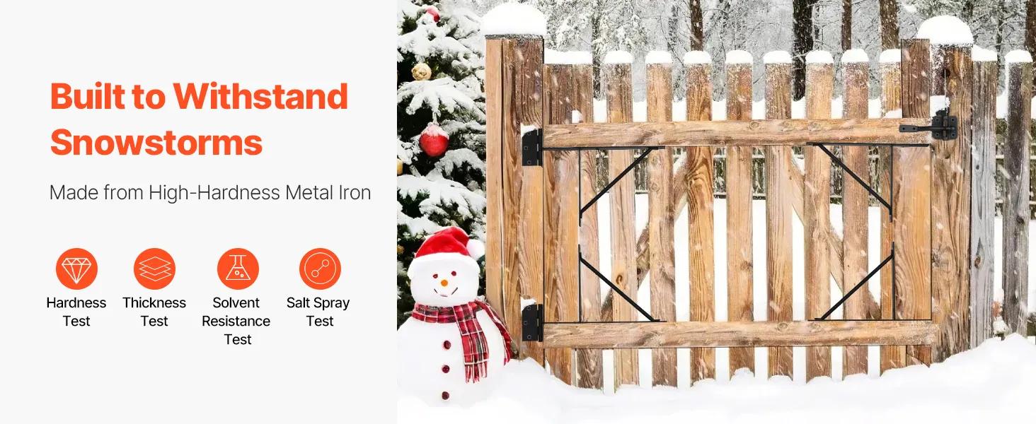 This metal iron gate corner brace bracket avoids sagging and aging, compatible with 99% of door types on the market. It's rust and corrosion-resistant, weatherproof against heavy rain, snow, and extreme conditions, ensuring long-lasting outdoor use for doors of all types and sizes.