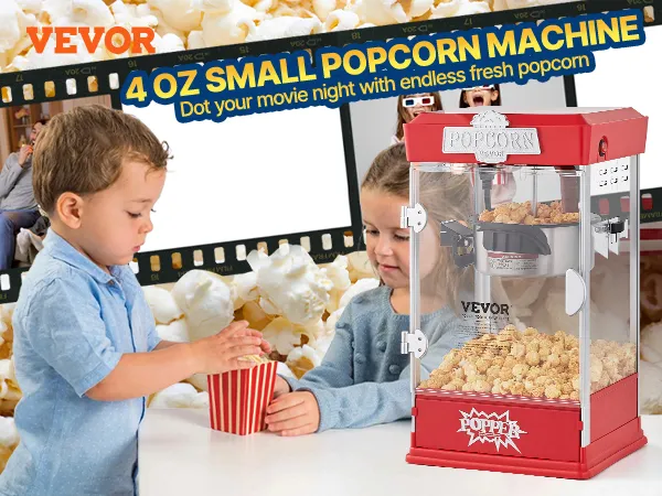 De multifunctionele 4 oz popcornmachine is uitgerust met interne LED-verlichting die zorgt voor een helder zicht en een filmische sfeer - perfect voor een geweldige filmavond met het hele gezin!