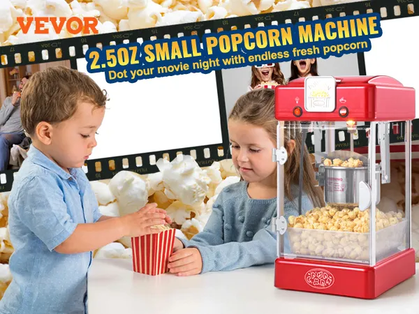 De popcornmachine met een capaciteit van 2,5 ounce is uitgerust met LED-verlichting die helder zicht mogelijk maakt en een filmische sfeer creëert - perfect voor gezinnen die willen genieten van een geweldige filmavond!