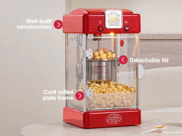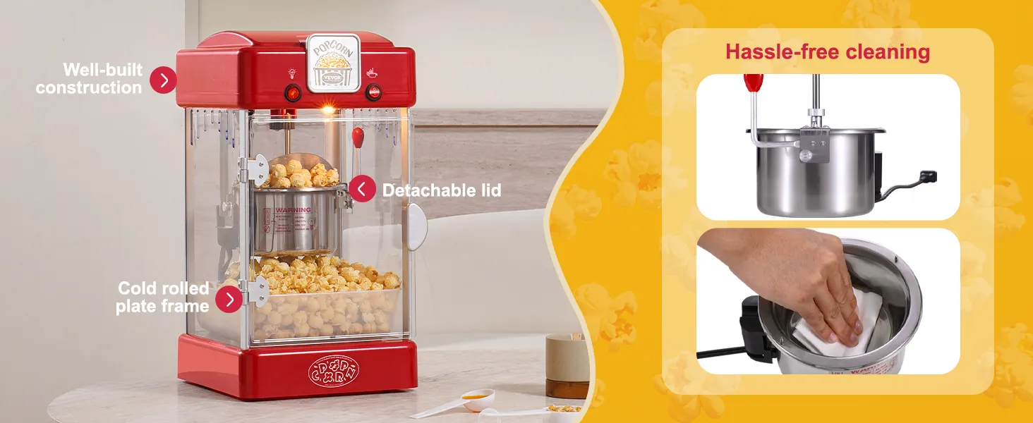 Gebruiksvriendelijk ontwerp: Zodra de hete kom begint te vullen, open je eenvoudig de klep eronder en is de popcorn klaar om eruit te halen! De uitneembare kruimellade houdt de binnenkant schoon en voorkomt dat korrels rondstrooien. Het verzamelen en afvoeren van gevallen graan was nog nooit zo eenvoudig!
