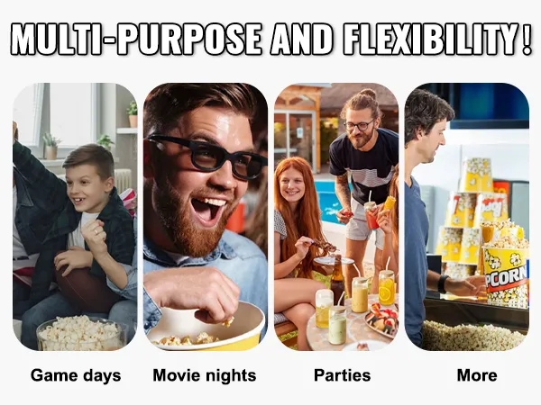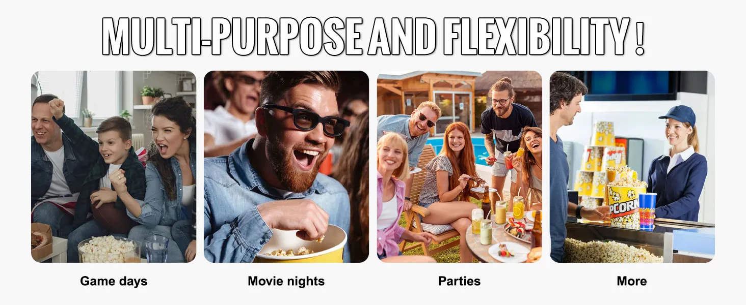 Deze popcornmachine is geschikt voor tal van evenementen zoals verjaardagsfeestjes, bijeenkomsten, liefdadigheidsevenementen en sportevenementen.