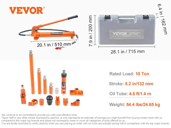 Draagtas: De gehele hydraulische krikgereedschapsset is compact en compleet, waardoor optimale werkprestaties worden gegarandeerd. De draagtas is inbegrepen, zodat u hem eenvoudig kunt opbergen. Het maakt het transporteren van de gereedschapsset eenvoudiger.