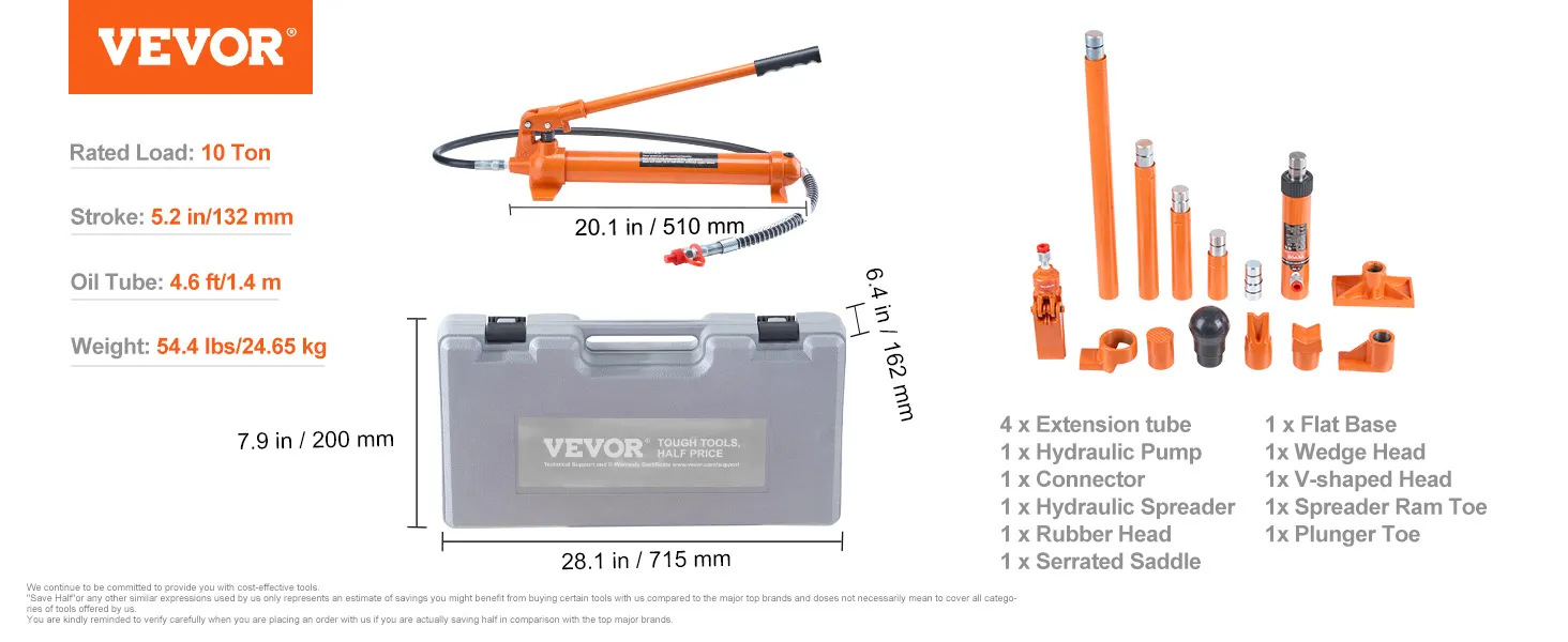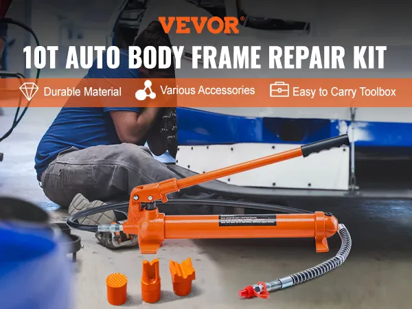 VEVOR hydraulische krikset, draagbare hydraulische krik 10 ton met 1,4 m olieslang, carrosseriereparatieset met opbergkoffer voor autoreparatie, vrachtwagen, boerderij, oranje