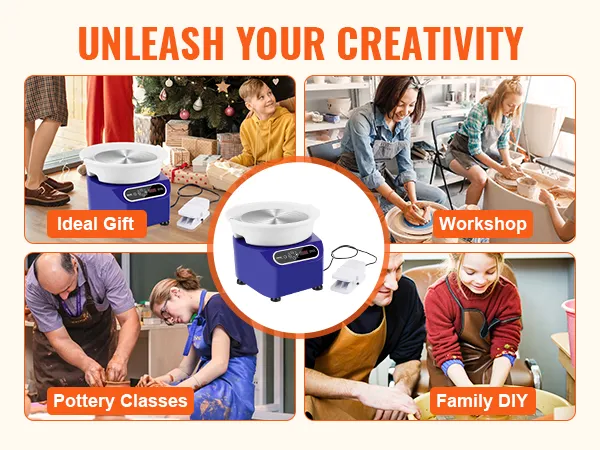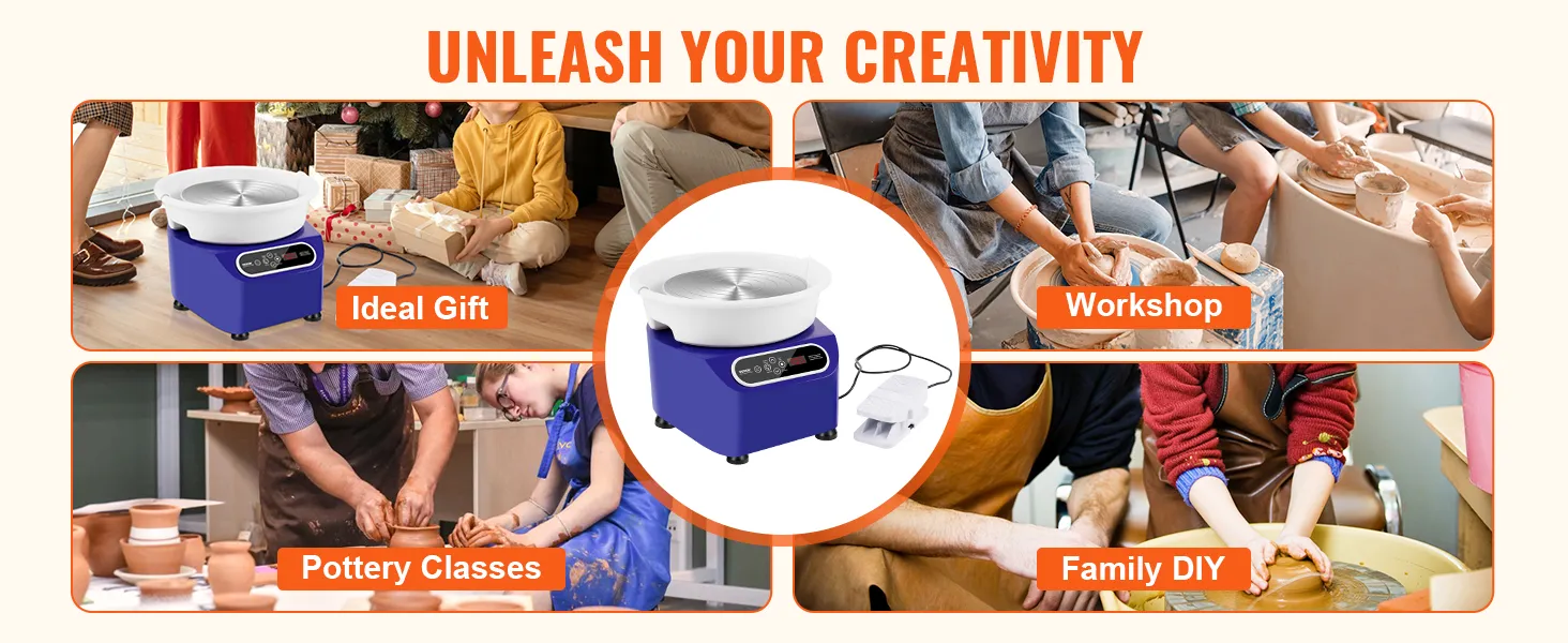 Comfortabele bediening: het tweesnelhedensysteem van onze keramische schijf maakt een flexibele bediening mogelijk. Met het moderne LCD-scherm kun je de voorwaartse en achterwaartse rotatie en snelheid nauwkeurig regelen en je aardewerkreis precies beginnen zoals jij dat wilt. Dankzij het pedaal met variabele snelheid hebt u uw handen vrij om u op uw creatie te concentreren.