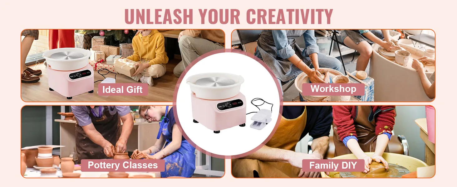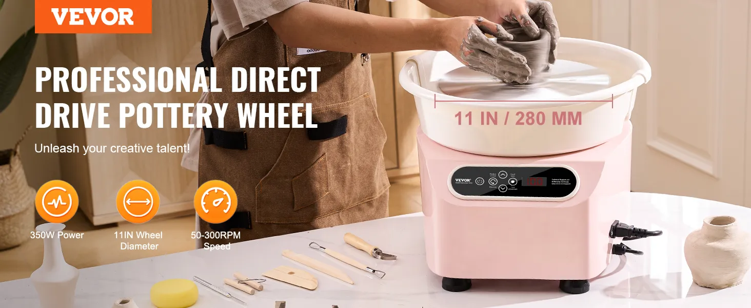 Hoge stabiliteit: onze pottenbakkersschijf is uitgerust met een moderne motor met directe aandrijving. Het biedt uitstekende stabiliteit bij zowel lage als hoge snelheden, vermindert onregelmatige vormen of vervorming tijdens het draaiproces en helpt u stukken van hoge kwaliteit te produceren.