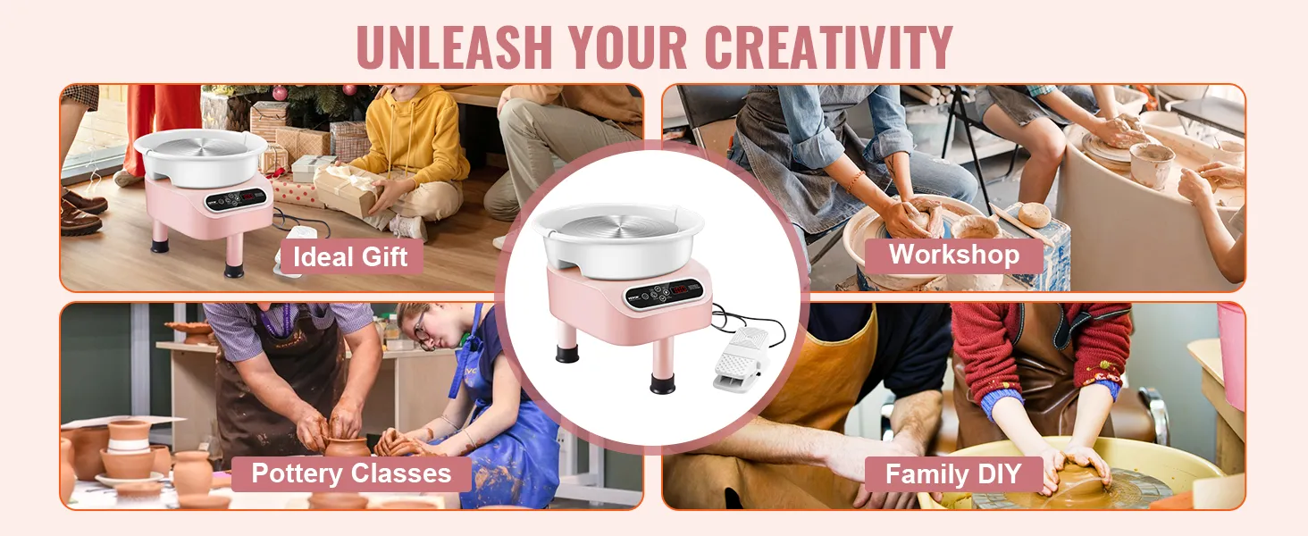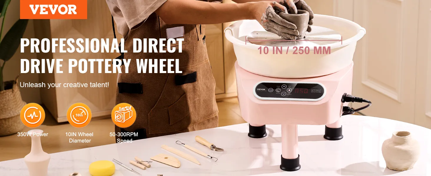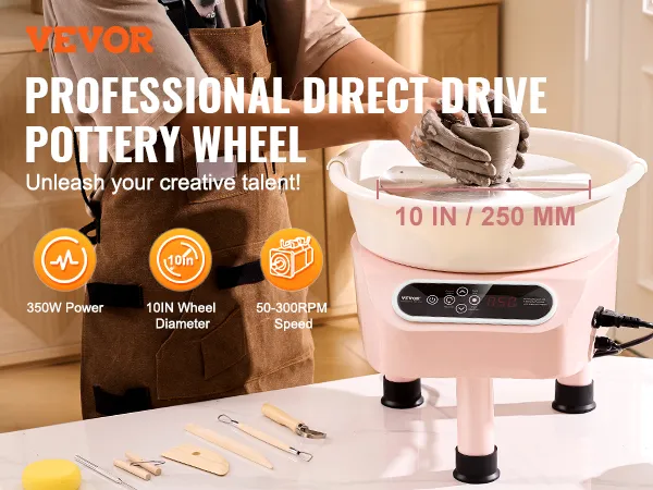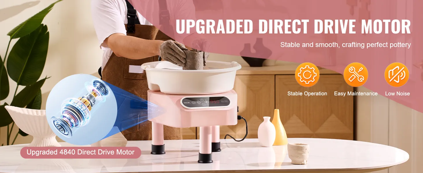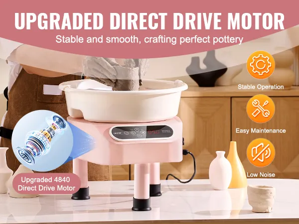 Hoge stabiliteit: onze pottenbakkersschijf is uitgerust met een moderne motor met directe aandrijving. Het biedt perfecte stabiliteit bij zowel lage als hoge snelheden, vermindert onregelmatige vormen of vervormingen tijdens het draaiproces en helpt u stukken van hoge kwaliteit te produceren.