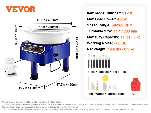 Stille kunst: De pottenbakkersschijf werkt met een geluidsniveau van minder dan 60 dB en haalt gemakkelijk snelheden van 50 tot 300 tpm. Geniet van een rustige, creatieve omgeving waar u uw artistieke inspiratie kunt uiten zonder afgeleid te worden door harde geluiden.