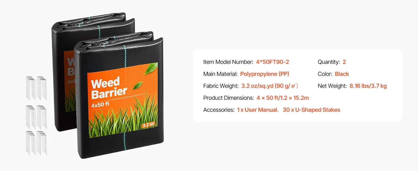 Gebruiksvriendelijk: Dit onkruidwerende doek voor opritten meet 1,2 x 15,2 m (4 x 50 ft) en bedekt een oppervlakte van circa 18,6 m² (200 ft²). Het is ideaal voor tuinen, erven en kassen. Het is gemakkelijk te knippen en aan te passen aan verschillende vormen. Groene markeringen helpen bij het uitlijnen van planten, waardoor het perfect is voor moestuinen, grindpaden en opritten.