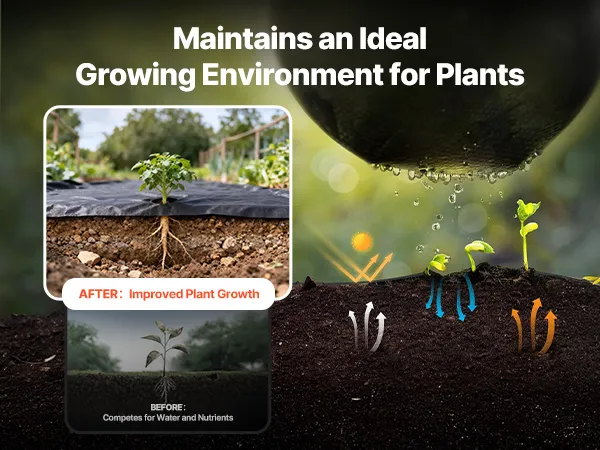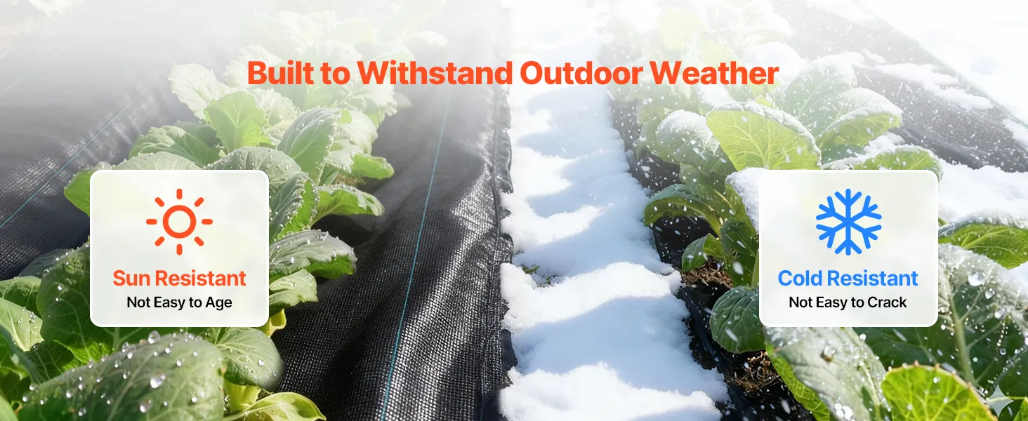 Evenwichtige luchtcirculatie: Dankzij het PP-weefsel met gelijkmatige micro-openingen laat dit VEVOR-onkruidbestrijdingsdoek water, lucht en voedingsstoffen vrij door de grond circuleren. Het voorkomt wateroverlast en bodemverdichting en bevordert de lucht- en watercirculatie, waardoor de wortelgroei van planten optimaal wordt ondersteund.