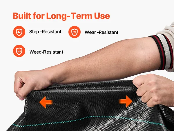 Weerbestendigheid: Dit onkruidwerende doek van polypropyleen is ontworpen om zijn vorm te behouden, zelfs onder wisselende weersomstandigheden zoals zonlicht, regen en smeltende sneeuw. Het materiaal voorkomt scheuren, veroudering en vervorming, waardoor betrouwbare prestaties in diverse gangbare tuinomgevingen gegarandeerd zijn.