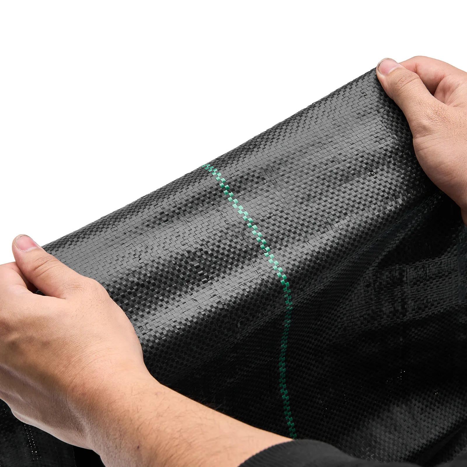Robuuste stofstructuur: Ons duurzame onkruidwerende doek is gemaakt van dicht geweven PP-weefsel (168 g/m²) dat een hoge scheur- en perforatieweerstand biedt. De dichte structuur voorkomt dat onkruidwortels erdoorheen dringen en zorgt voor langdurige stabiliteit, zelfs onder grind, stenen of intensief gebruikte buitenoppervlakken.