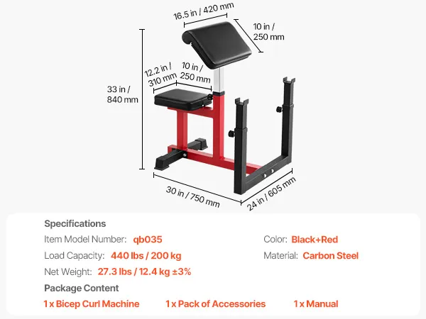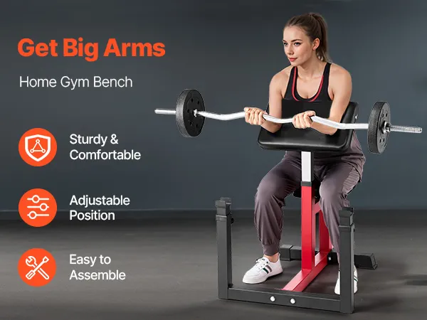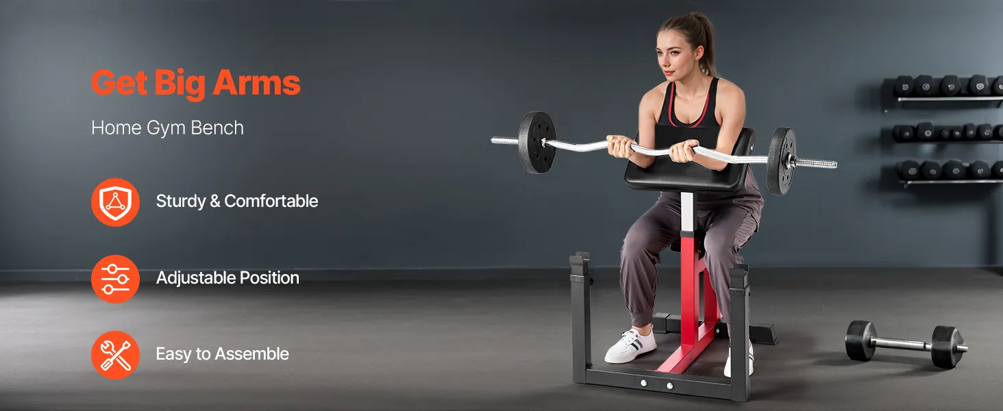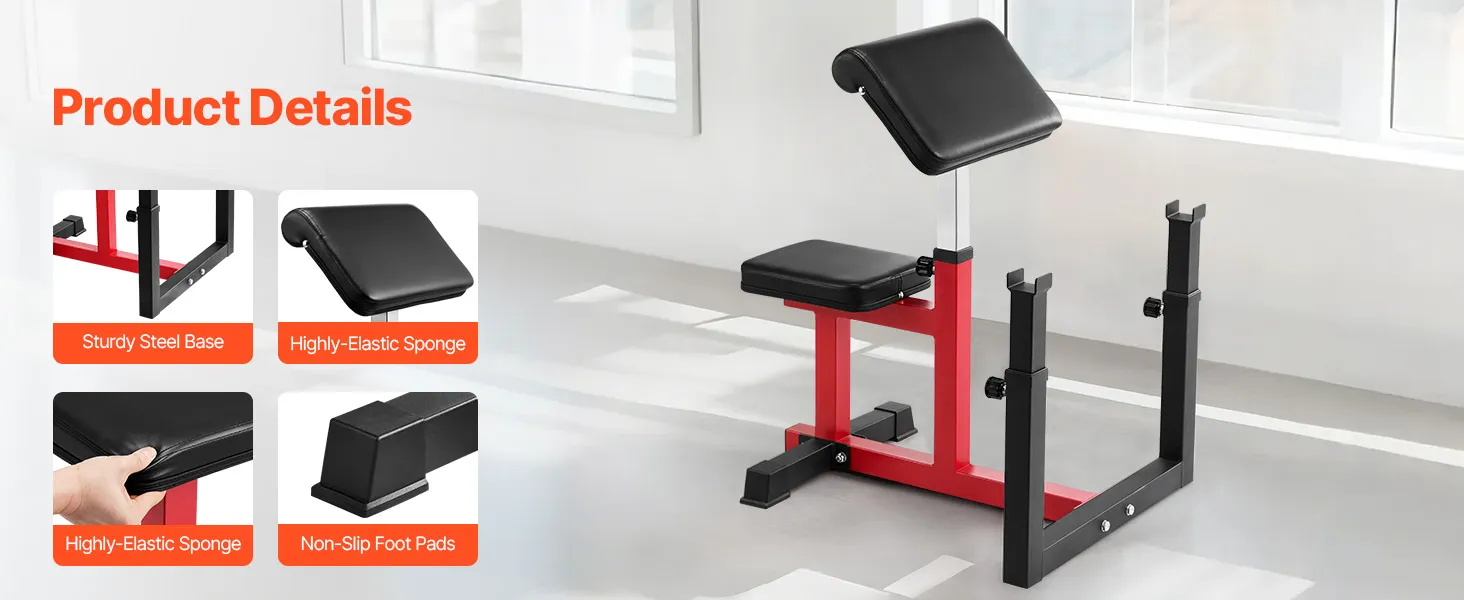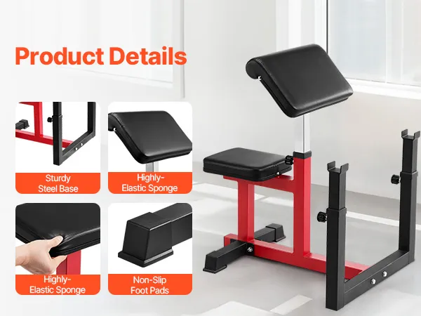More Humanized Details: Built with a sturdy steel base, highly-elastic sponge padding, and non-slip foot pads, this bicep strength bench ensures enhanced stability, comfort, and safety during your workouts