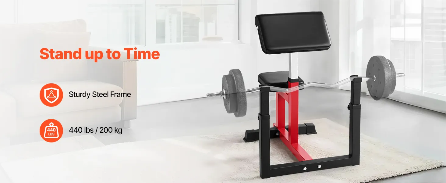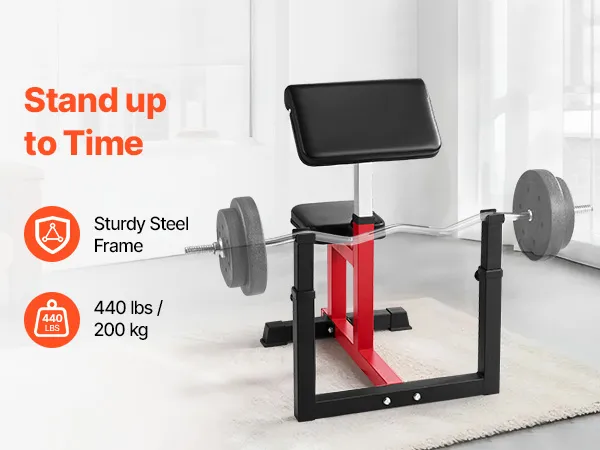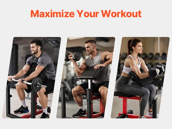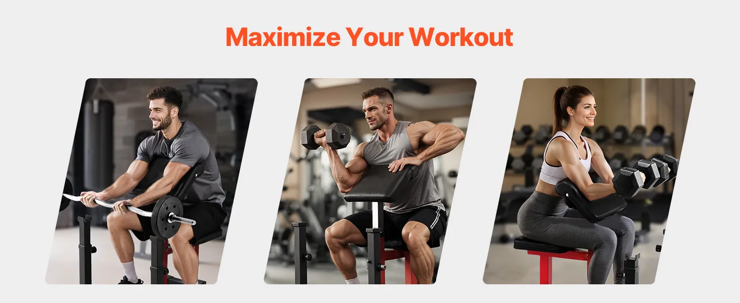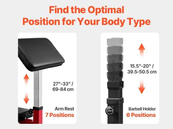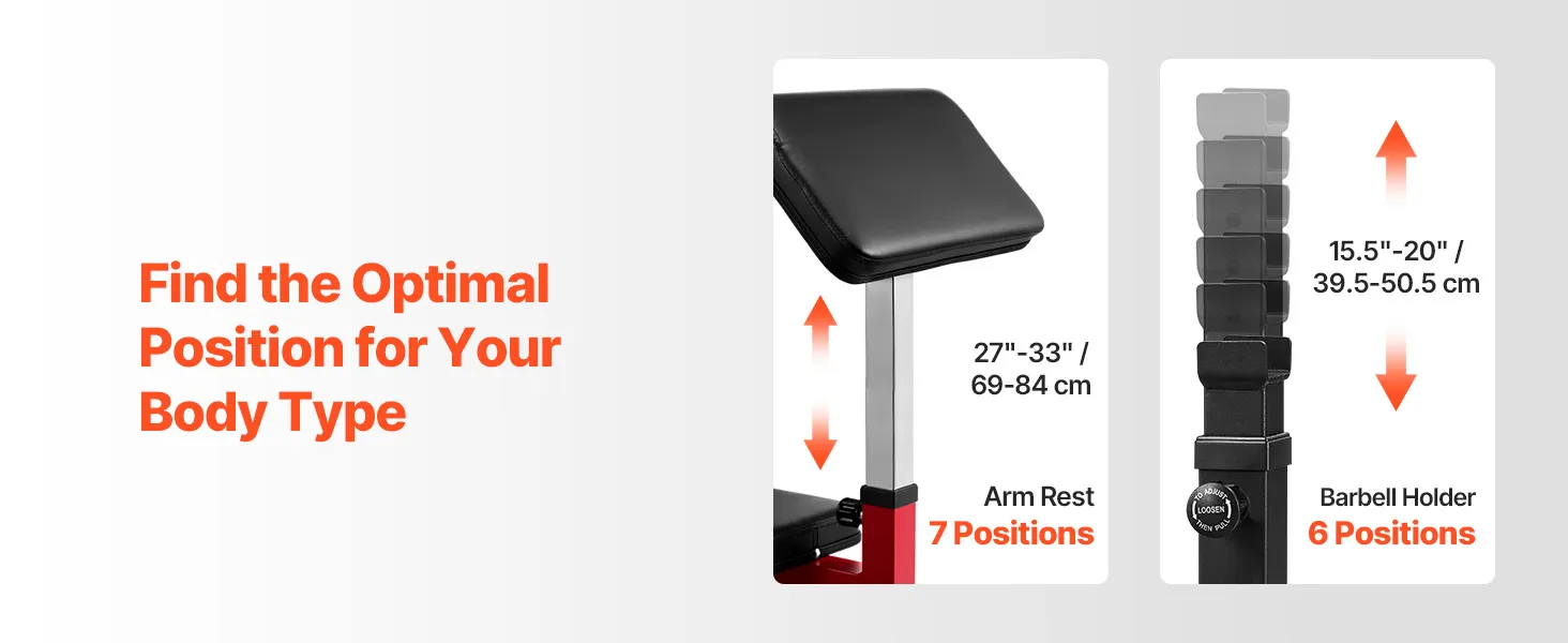 Customized Comfort & Fit: Adjustable to match your body! This bicep curl machine features 6 barbell holder positions, and 7 arm rest positions for a tailored workout experience. Adapt your setup for optimal comfort and precision every time