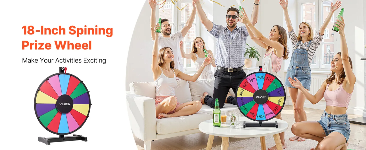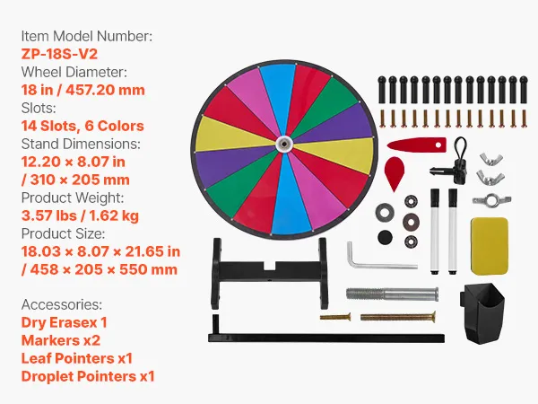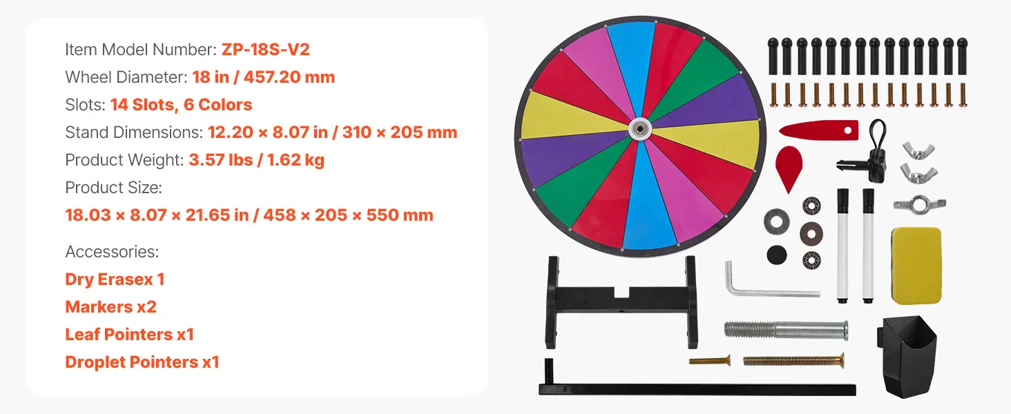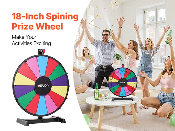 VEVOR Wheel of Fortune (457 mm) 14 Slots Wheel of Fortune met standaard, loterijspellen Winnende Roulette met schoolbordwisser en 2 stiften, 6 kleuren, draaiend prijzenwiel Ideaal voor feestcafés, beurzen