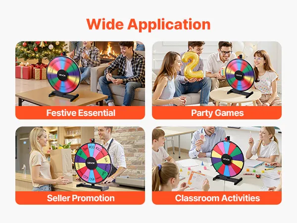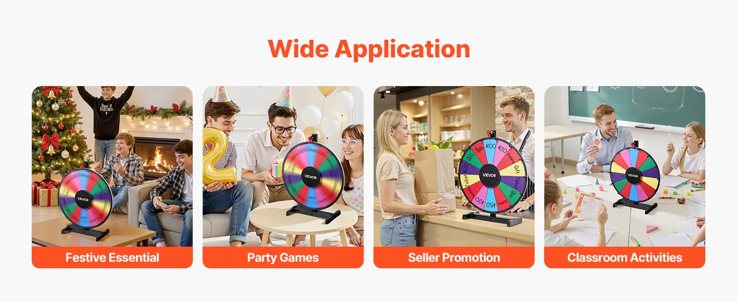 Draagbaar en ruimtebesparend: dankzij het compacte en lichte ontwerp is het prijzenwiel gemakkelijk mee te nemen en te verplaatsen, ideaal voor verkoopacties, klaslokalen, feesten en festivalspellen