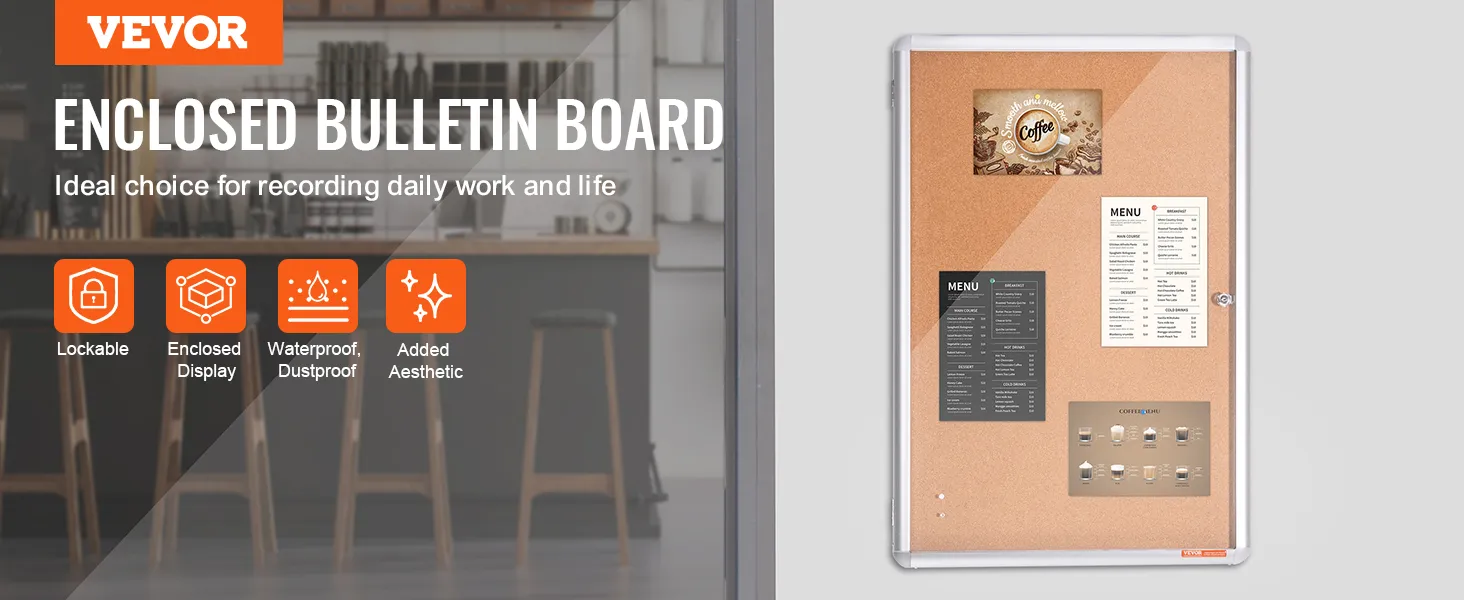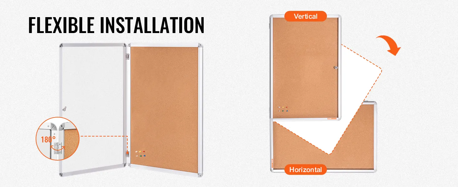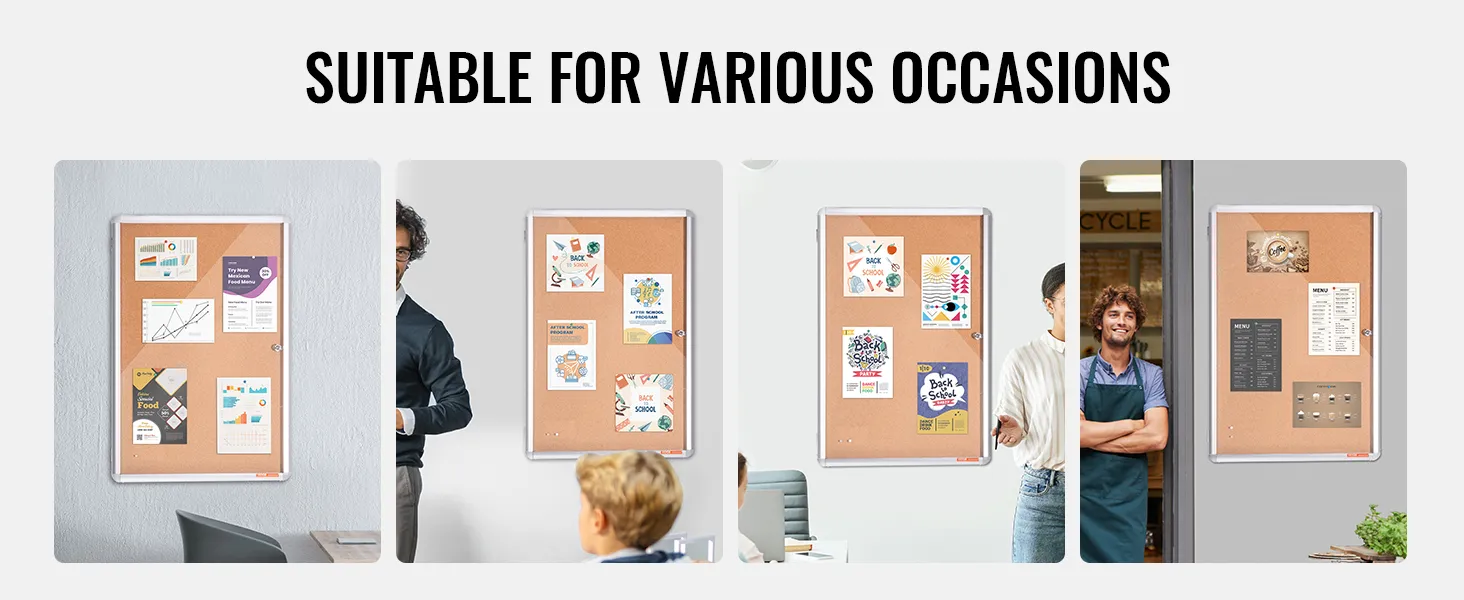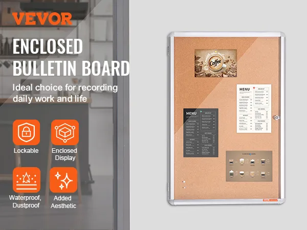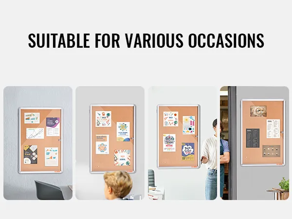 Enclosed Bulletin Board: Our bulletin board measures 36 x 24 inches, providing ample space to pin photos, announcements, and other materials. The lockable design ensures the safety of your displayed content, while the stylish aluminum frame complements any interior decor. Perfect for posting announcements, displaying artwork or photos, and showcasing information for public viewing.