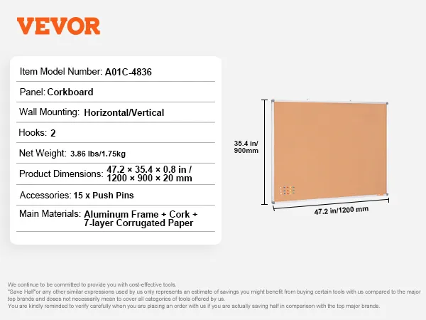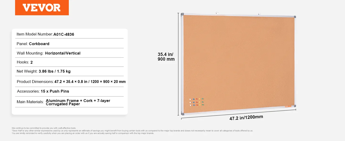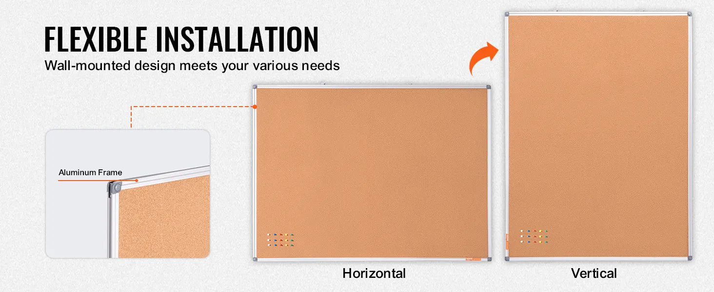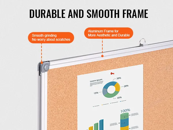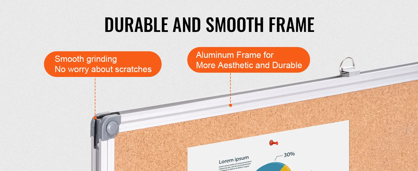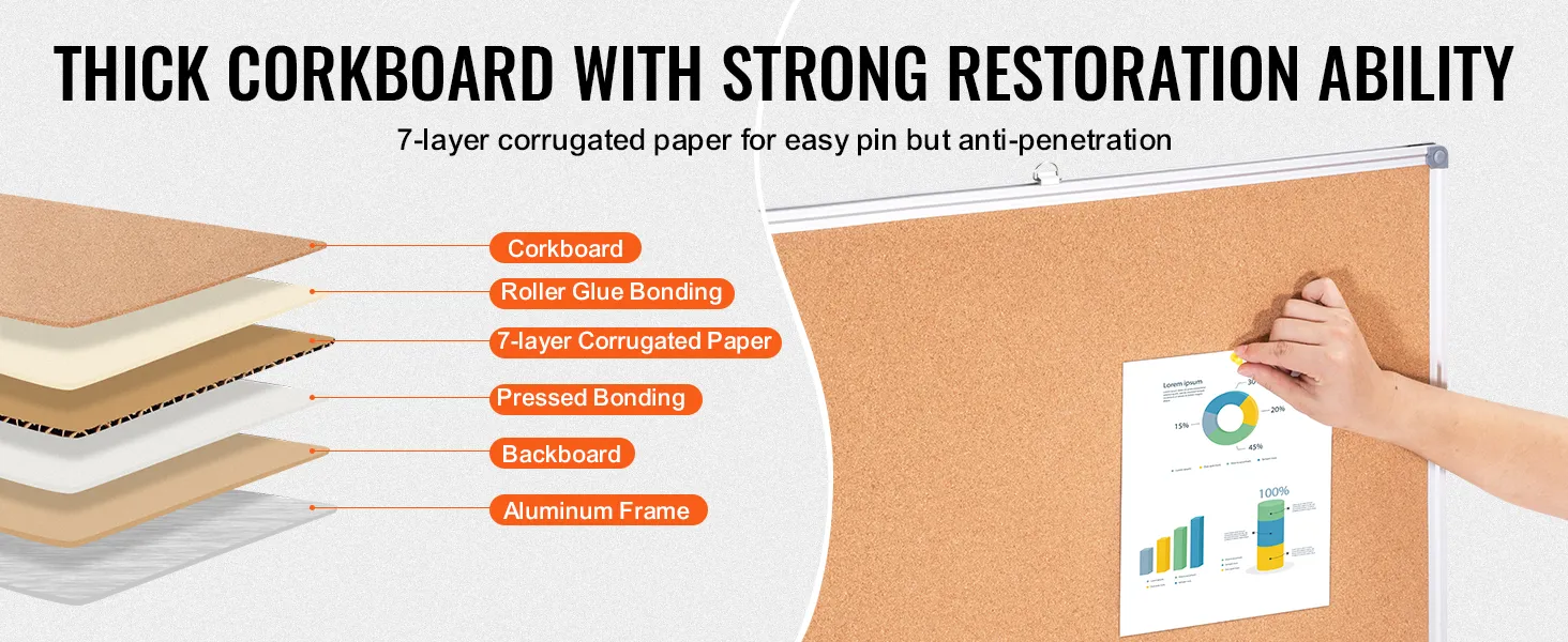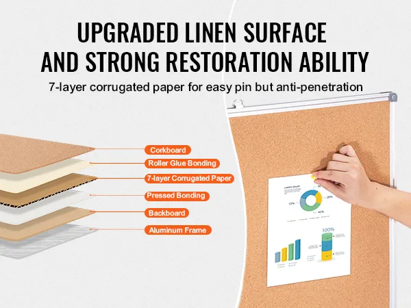 High-Density Cork Board: The cork area is upgraded with 7 layers of corrugated paper to prevent unsightly pin holes even with long-term use. It is reinforced with glue and press plates, offering a more attractive and durable surface that keeps pins secure and prevents bulging.