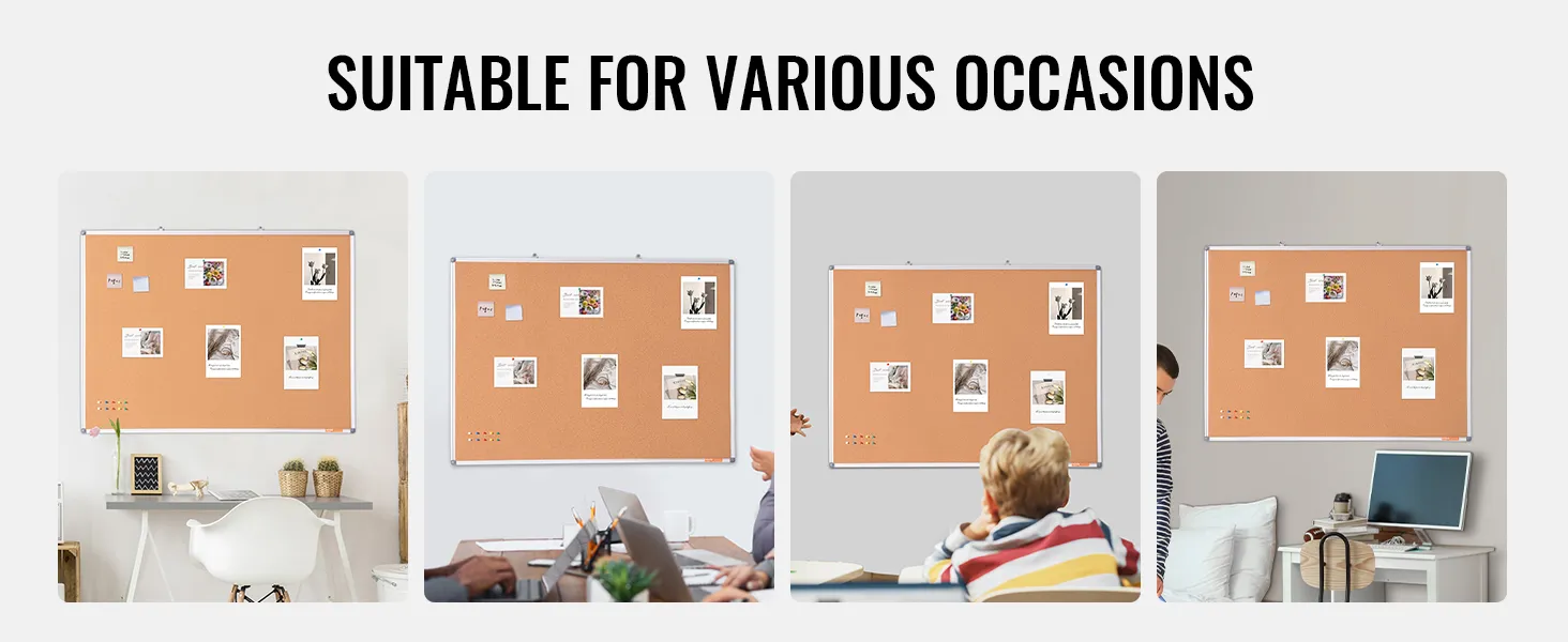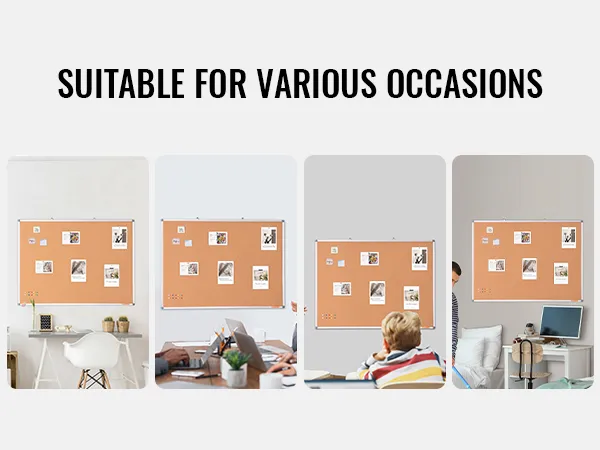 Versatile Use: This corkboard is perfect for sparking creativity by adding photos and images. It serves as a memo board, notification board, and visual board for recording daily plans, notes, messages, and menus. Ideal for use in homes, offices, classrooms, schools, universities, dormitories, kitchens, locker rooms, and children’s rooms. It’s a great aid for managers, teachers, students, and kids.