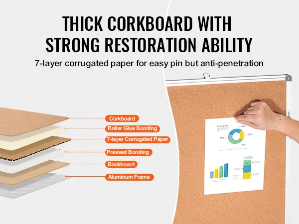 The cork area is upgraded with 7 layers of corrugated paper, reinforced to prevent bulging and ensure a sleek appearance. The aluminum frame has rounded edges and is securely assembled with screws.