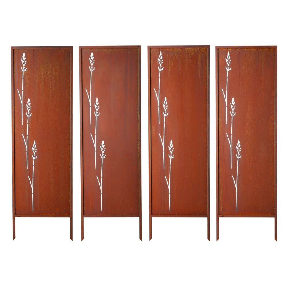 Robuuste metalen constructie: Ons privacyscherm voor buiten is gemaakt van hoogwaardig constructiestaal en biedt een grotere duurzaamheid dan schuttingen van hout of kunststof. De solide metalen constructie is ontworpen voor gebruik buitenshuis en garandeert langdurig gebruik en stabiliteit, zelfs onder alle weersomstandigheden.