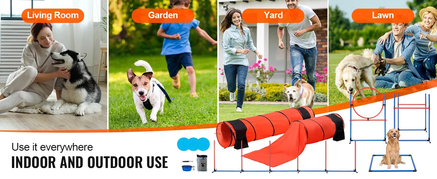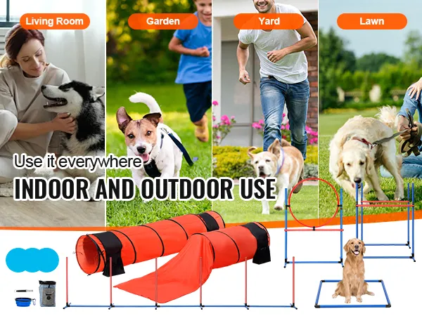 Enhance Your Dog’s Agility: Our kit includes a 27.95-inch wide jump bar, a 23.62-inch diameter jump ring, 6 base poles, a 118.11-inch open tunnel, a 59.06-inch semi-enclosed tunnel, and a pause box. Perfect for improving your dog’s agility and obedience while strengthening your bond and having fun.