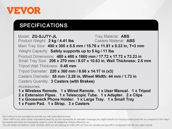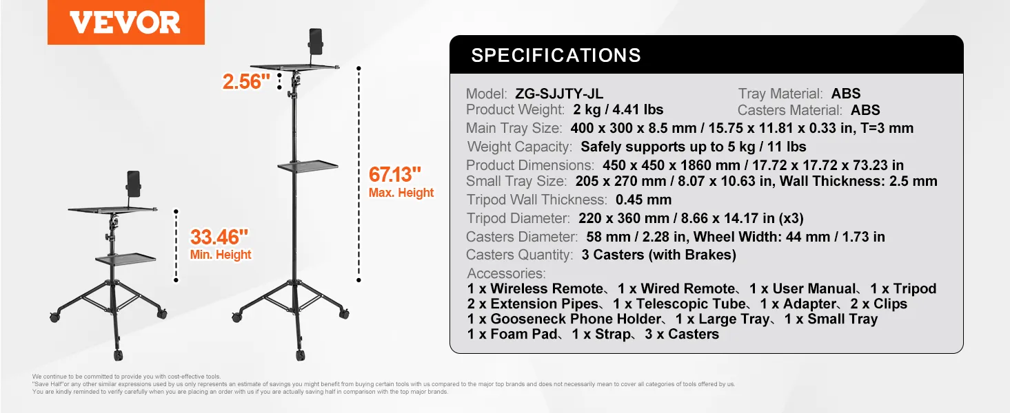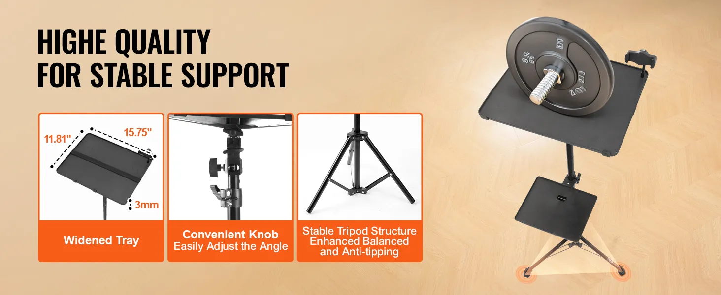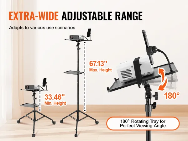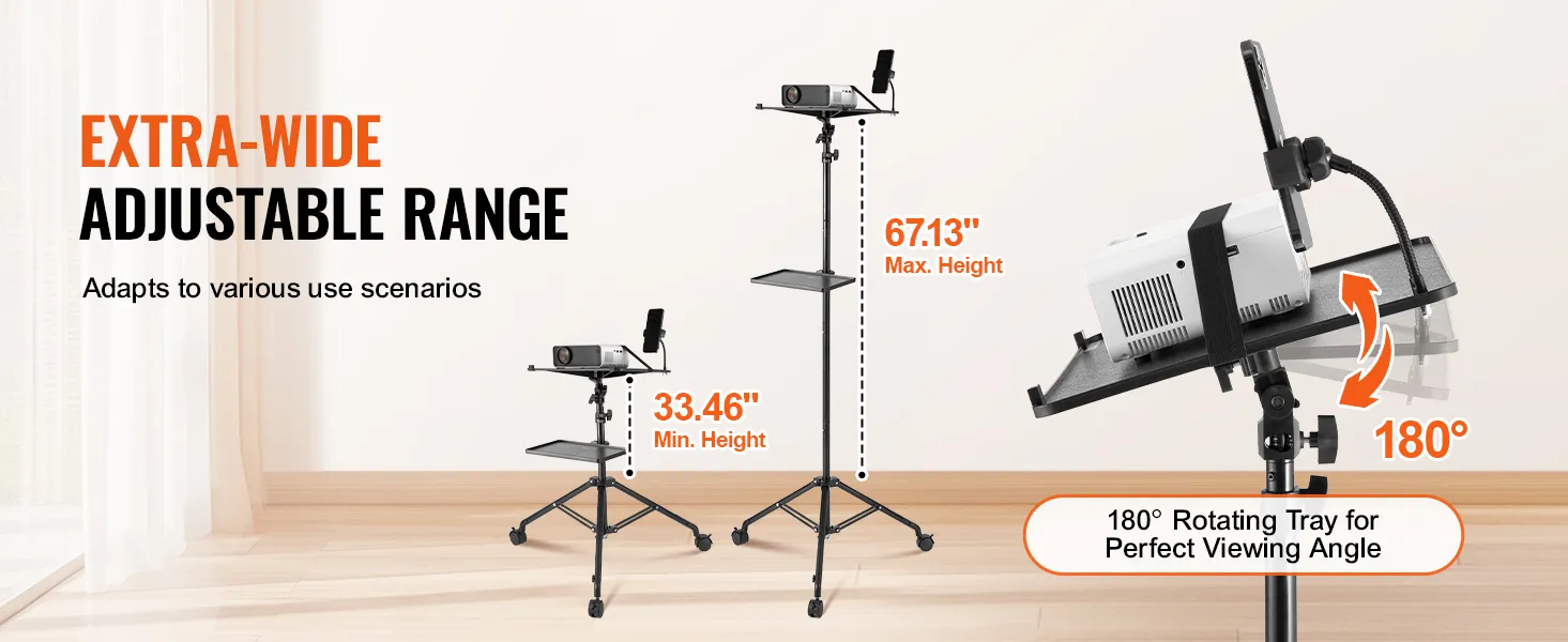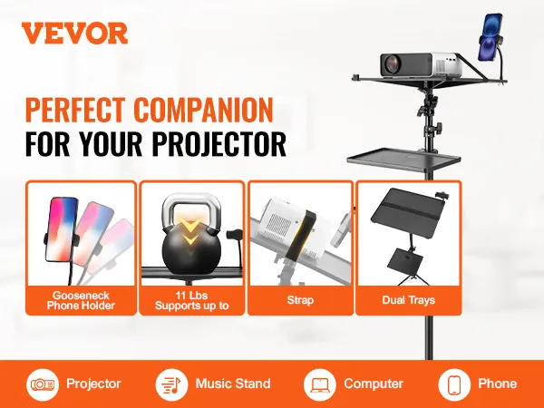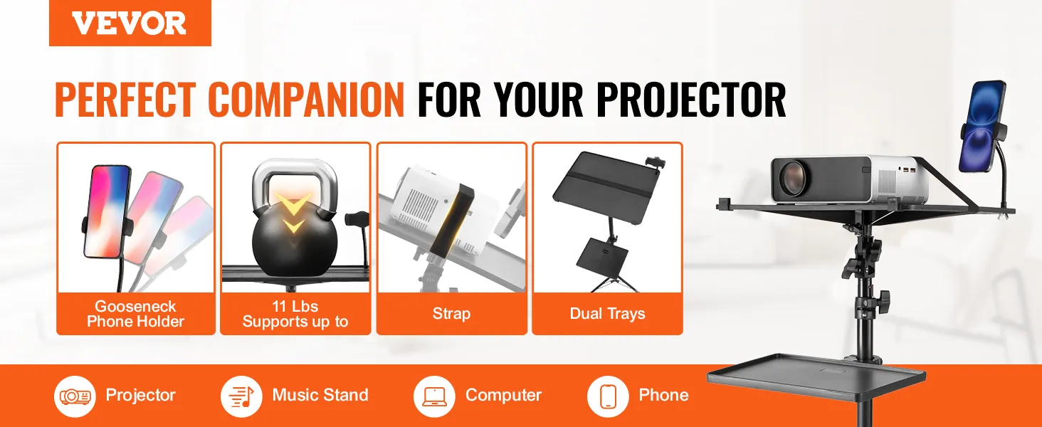 Versatile Stand: This projector stand tripod features an adjustable tray with a gooseneck phone holder, allowing you to combine your projector and laptop for any occasion!